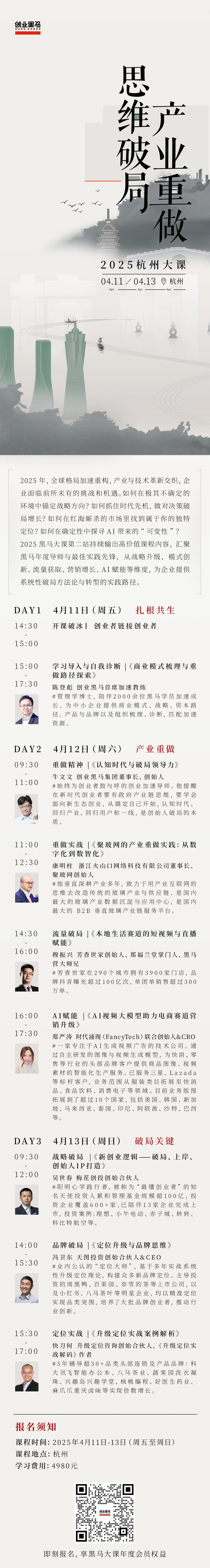 报名2025黑马杭州大课,让我们一起走出去,看对方向,跟对人、做对事,掌握未来10年财富密码。 ]article_adlist-->费用:4980元/人,现在报名,可享黑马大课年度会员权益,会员核心权益:全年8场线下大课,任选3场参加。